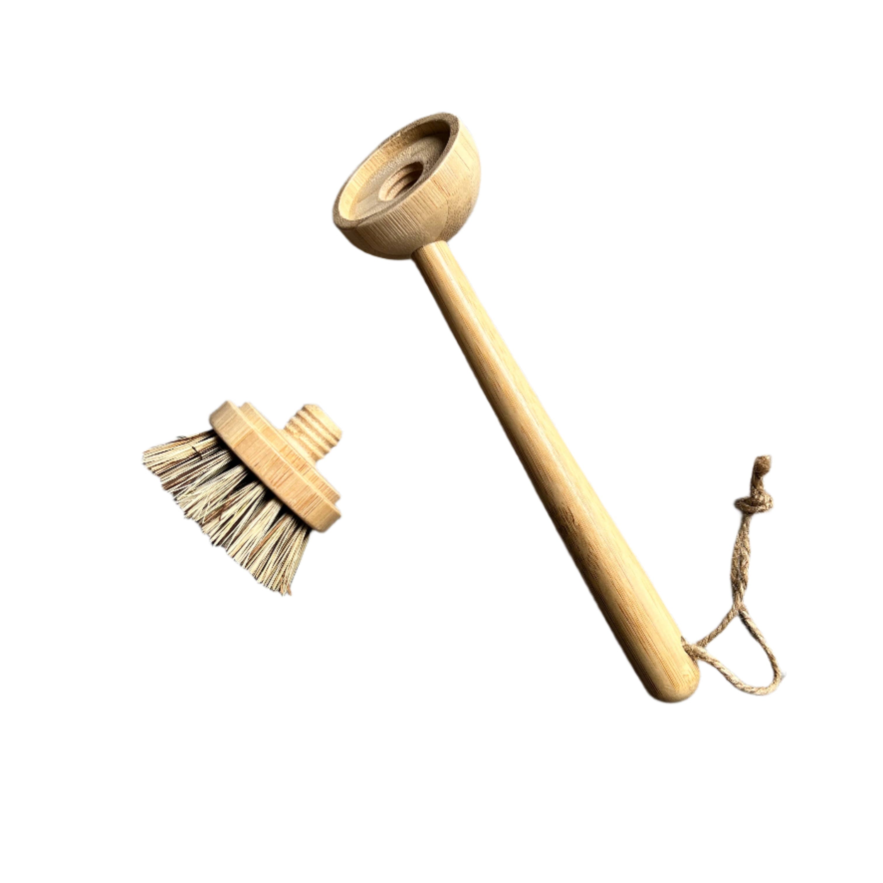 Cepillo para platos de bambú y coco con cabezal de cepillo reemplazable.